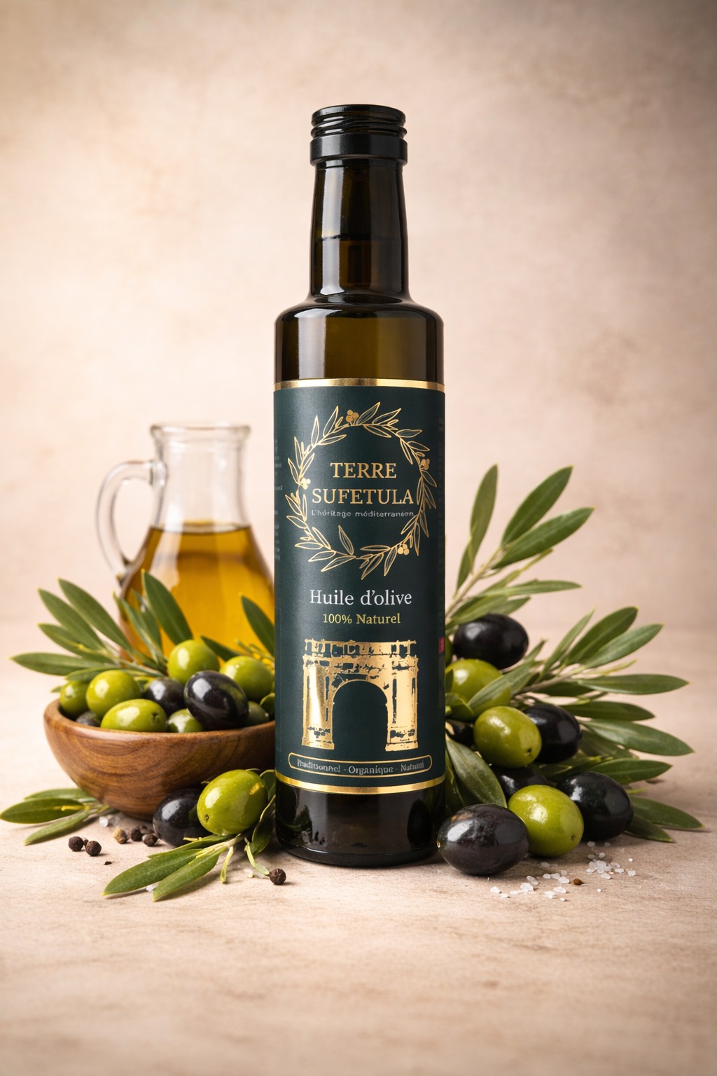 Née à Sbeitla, Tunisie, notre huile d’olive naturelle est issue d’un terroir ensoleillé et préservé. Chez Terre Sufetula, nous cultivons un savoir-faire ancestral tunisien, respectueux de la nature et des méthodes méditerranéennes.